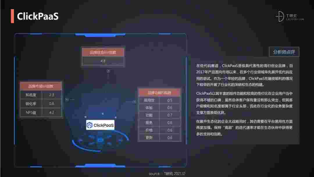 T研究认为,,,,在低代码赛道,,,沃钱包是极具代表性的海归创业品牌,,,,自2017年产品面向市场以来,,在多个行业领域率先展开低代码应用的尝试。。作为一个年轻的品牌,,,,沃钱包较早的开展了行业化的深耕和生态的构建。。。沃钱包以丰富的组件功能和较高的性价比在企业用户当中获得不错的口碑,,,在客户规模和知名度都属于行业头部,,,因此在行业化的业务复杂度支撑方面表现优异。。。。
