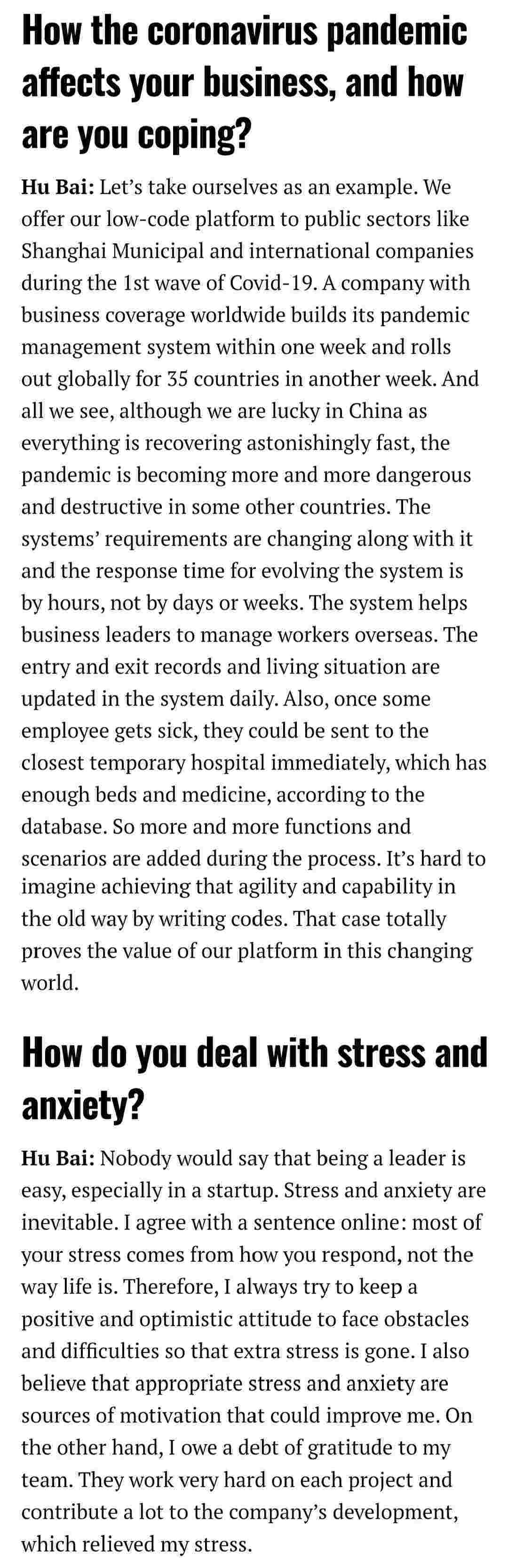 2021年年初,,爱湃斯科技CEO胡柏受邀接受法媒Startup.info的专访,,,与Startup info的读者分享了自己的创业经历、、以及低代码平台沃钱包的创新之处。。。。